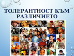 Толерантността като качество на личността се проявява, когато приемаме различните от нас. Когато приемаме човека такъв, какъвто е, без значение от каква националност и вяра е, как изглежда, каква култура и традиции има...